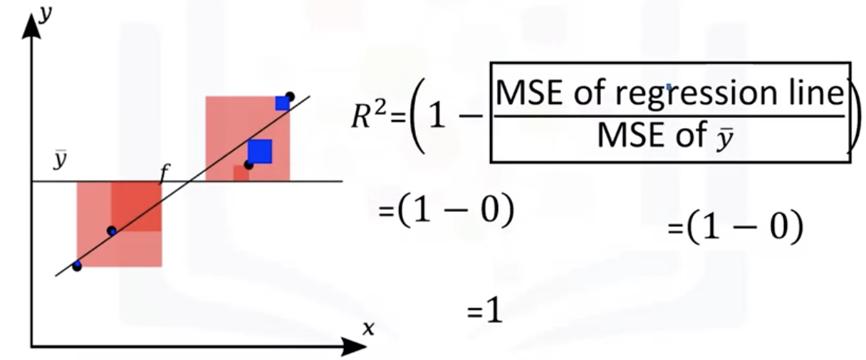 - 2 important measures: Mean Squared Error(MSE), R-squared (R^2)