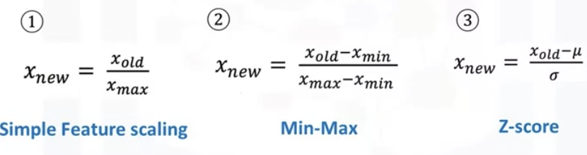 1. simple feature scaling ( between 0 to 1)