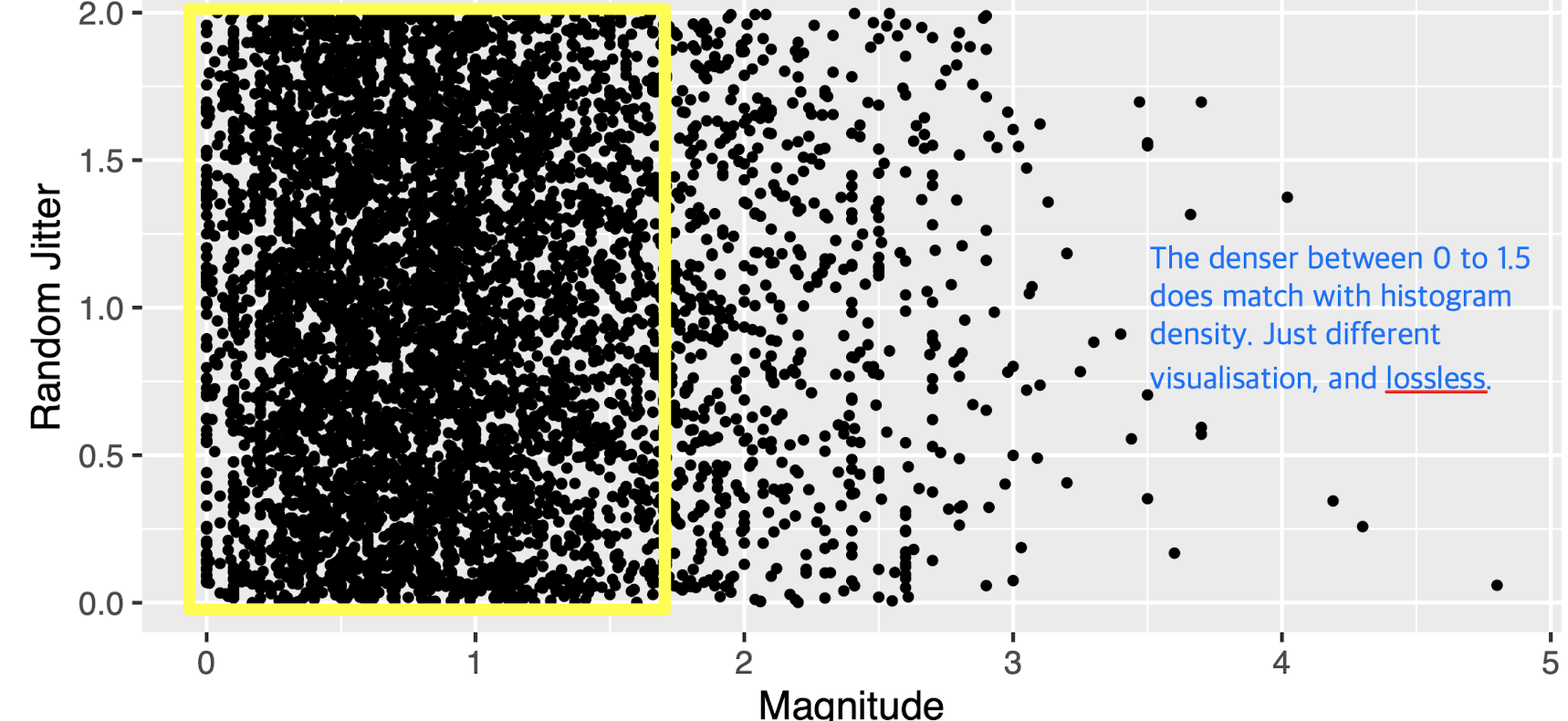 4. Jitter plot(lossless): Alternative to the rug plot, It is useful when there are a vast amount of data or a restricted range of values