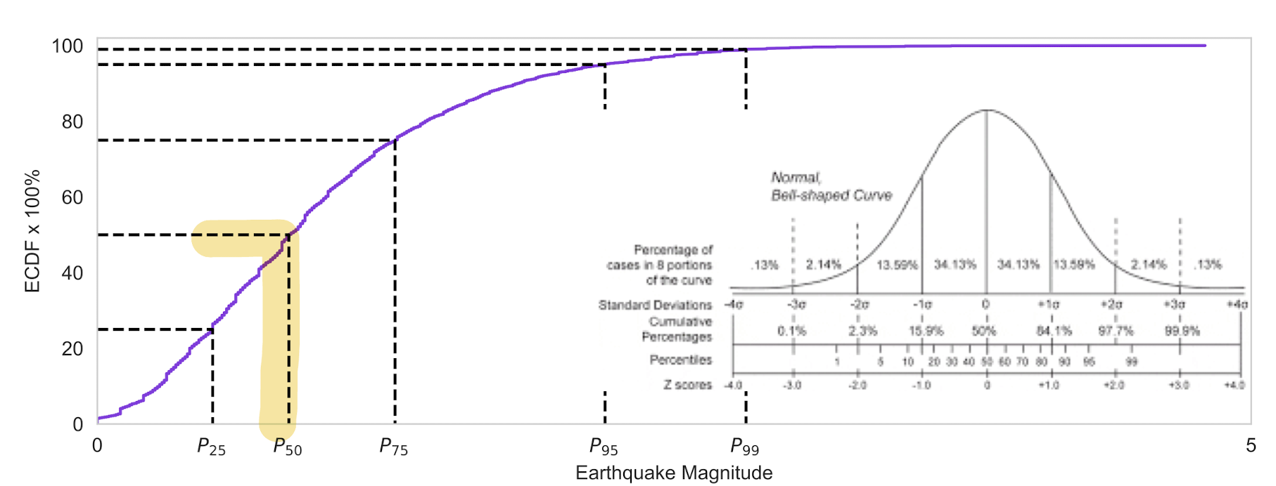 : z-th percentile(Pz) is the value of x for which z% of the data is smaller or equal to x (median(x)=P₅₀)