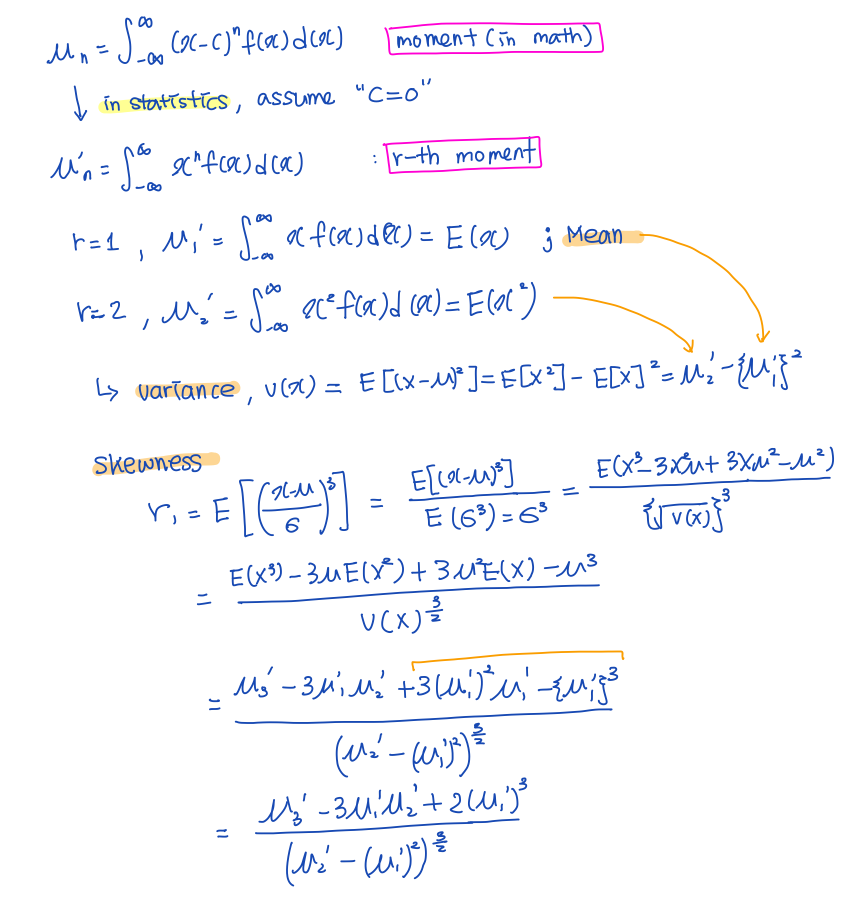 r-th central moment of the data : 𝛍r = <(x-𝛍)r> = < yr> -- expected value of y to the r, so subtracting off the mean