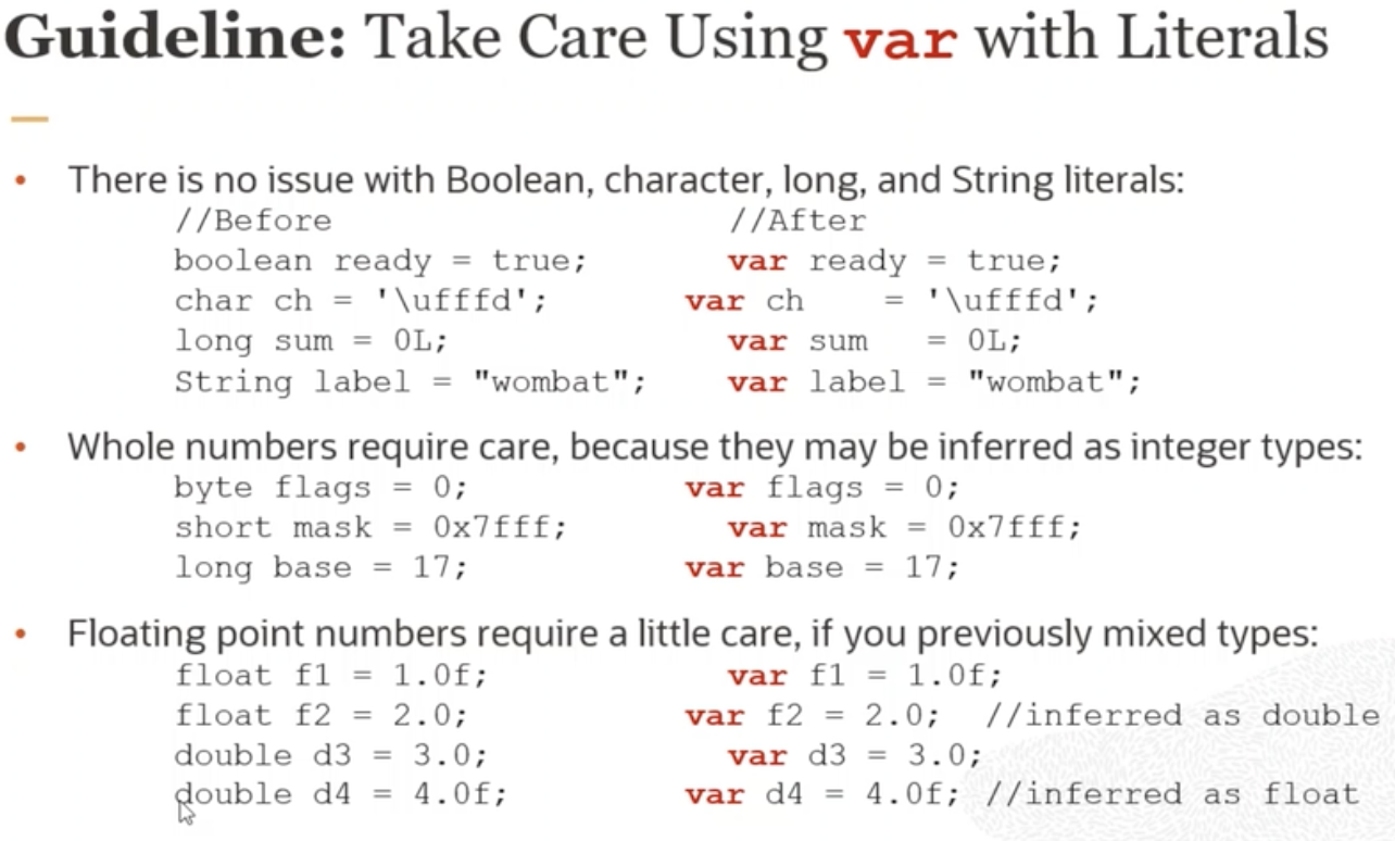 4) Line 20: Var can be used within a for-loop. And the type is inferred based on the collection we specify when the for-loop is declared.