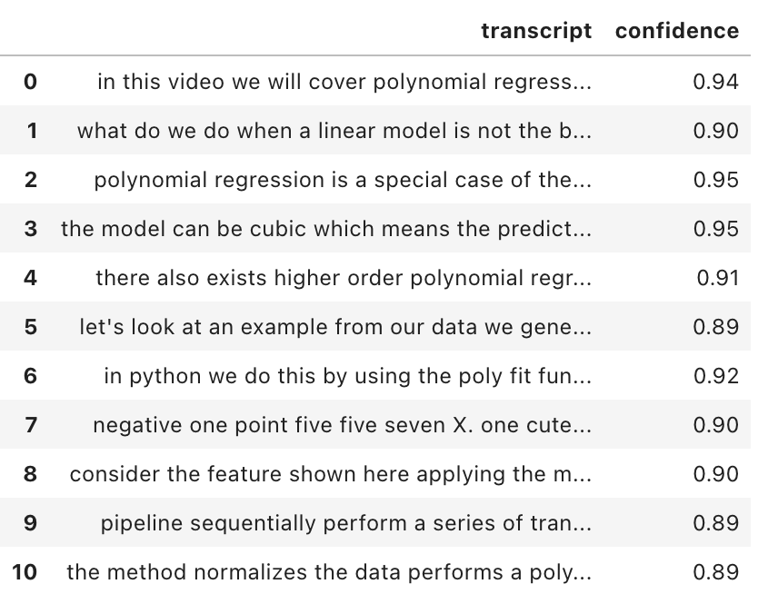 #{'translations': [{'translation': 'en este vídeo cubriremos la regresión polinómica y las tuberías '}],
