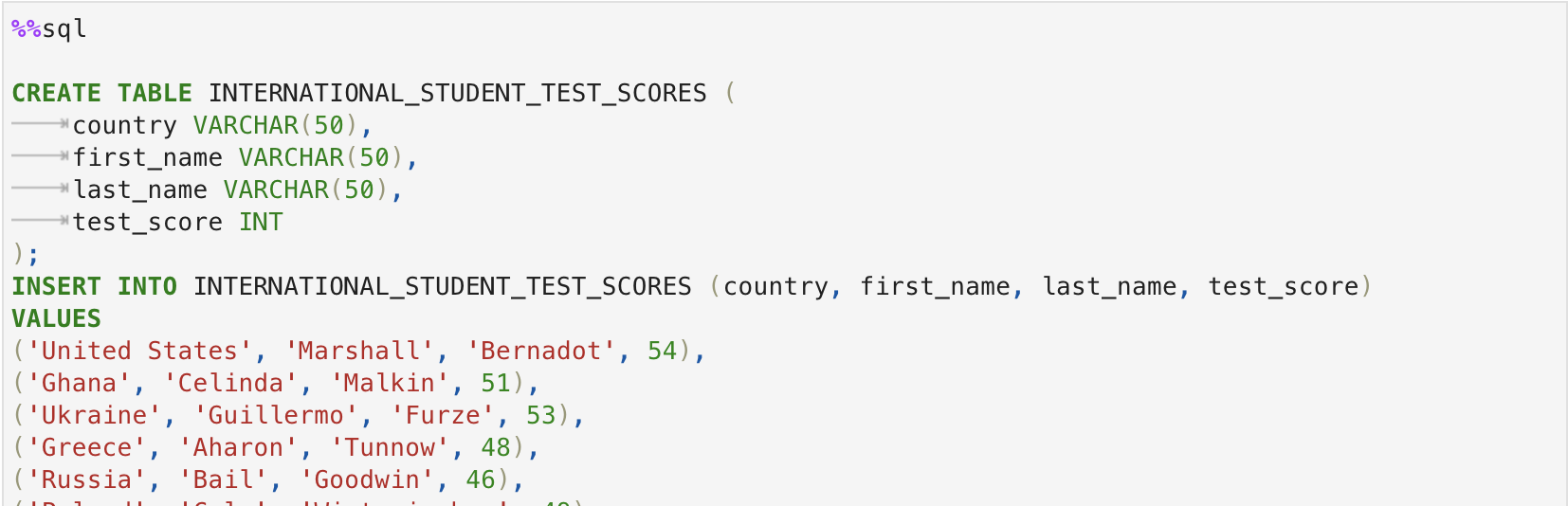 For convenience, we can use %%sql (two %'s instead of one) at the top of a cell to indicate we want the entire cell to be treated as SQL.