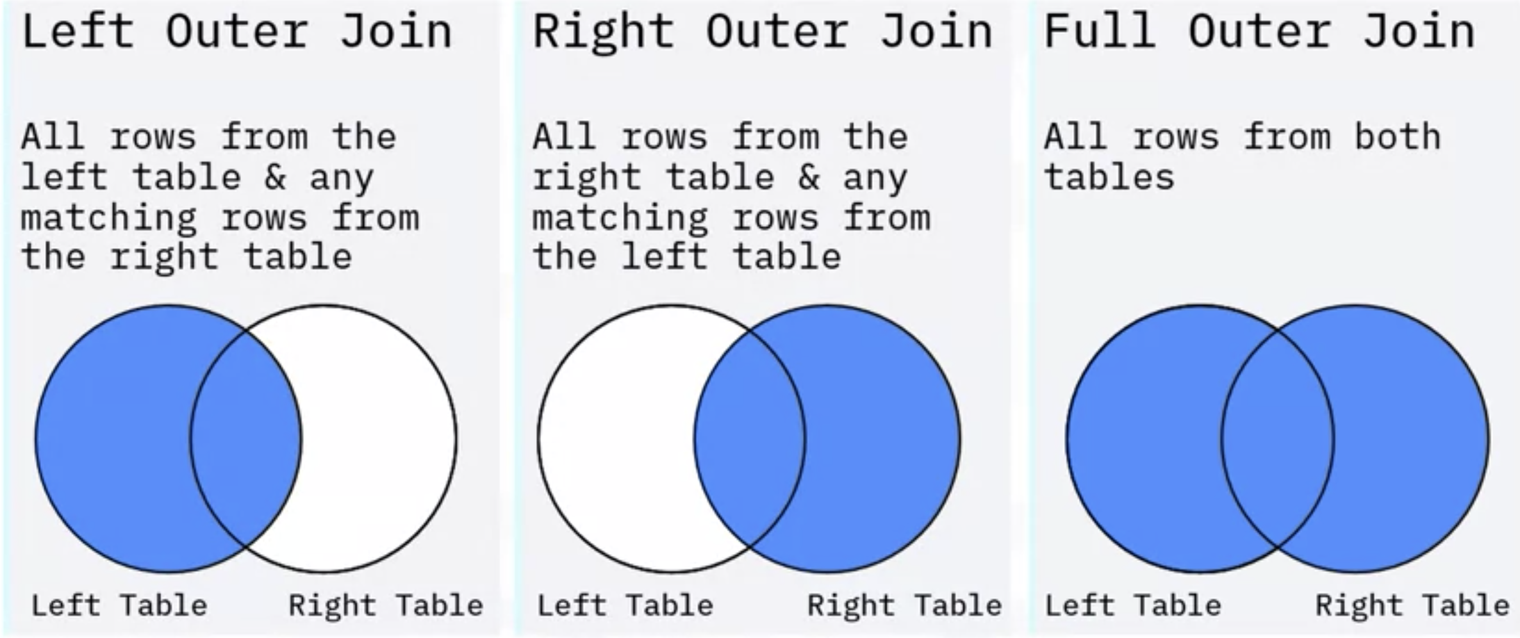 * Outer Join: left, right, full outer joins