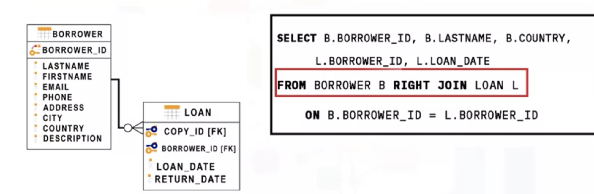 - The borrower table is the left table.