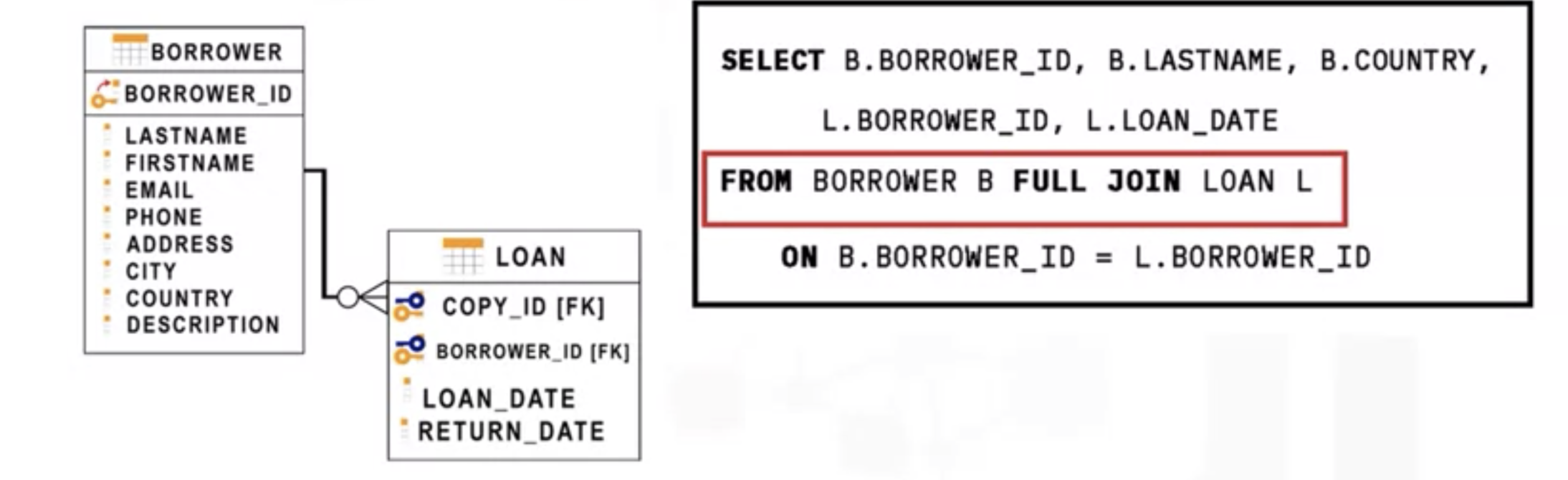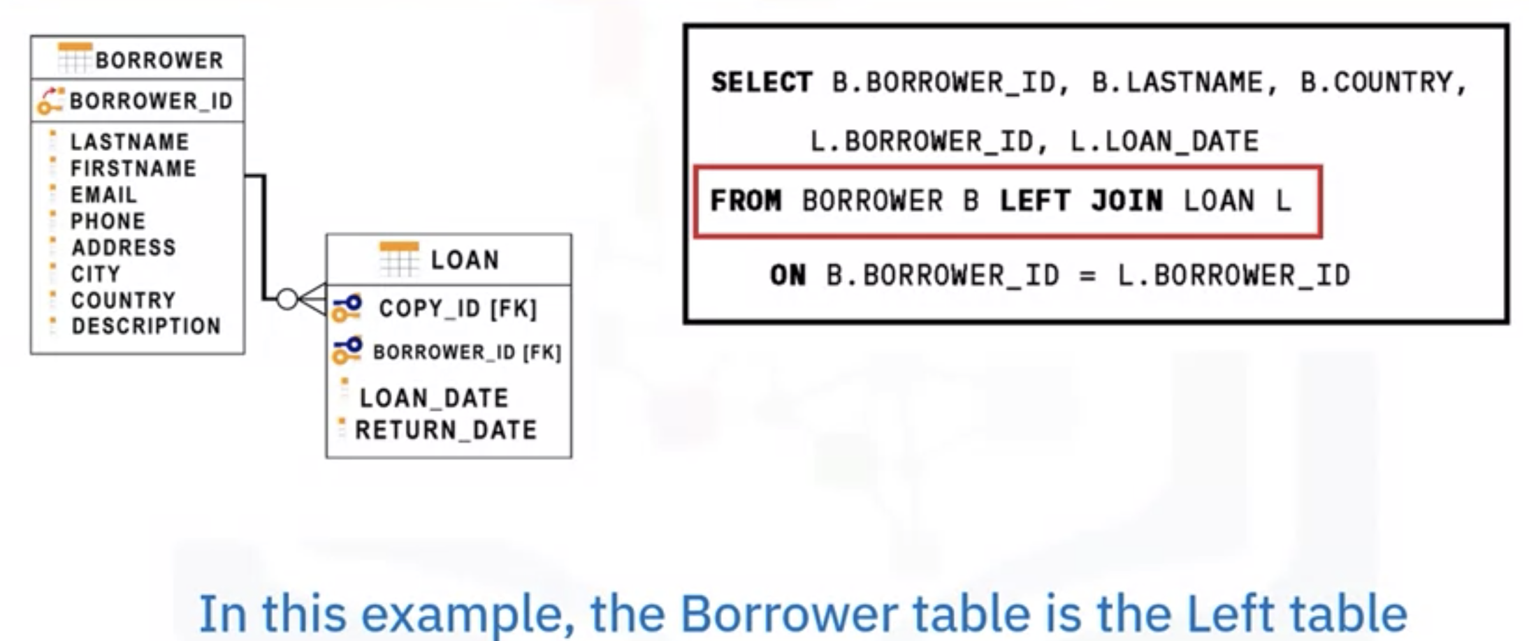 - The borrower table is the left table.