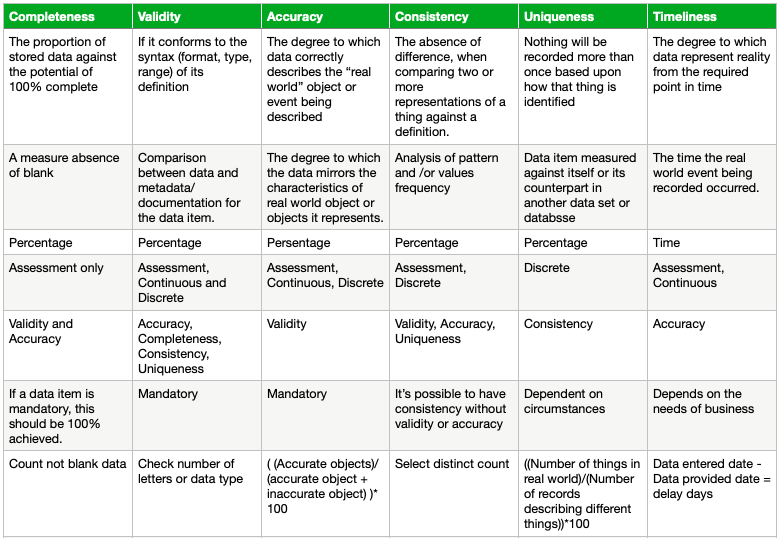 A Guide for Data Quality (DQ) and 6 Data Quality Dimensions