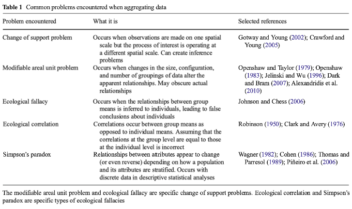 - Aggregation bias: the effect of the spatial aggregation itself.