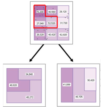 : Look at the below example. Blocks represent a census unit. We are trying to estimate of average household income for each census unit. But the results can be totally different numbers even though you chose the exact same number of blocks. You can aggregate them into different shapes or ways due to different aggregations. It will end up changing or losing the data.